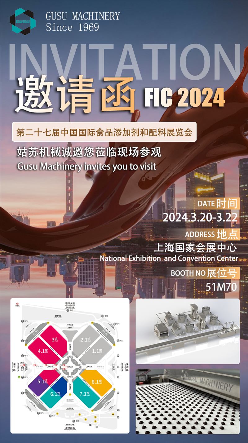 第二十七屆中國國際食品添加劑和配料展覽會(FIC)即將開幕,屆時姑蘇機械將攜帶我司巧克力機械設(shè)備參展,期待與您相約在3月共同開啟新的征程,姑蘇機械致力于為全世界的巧克力機械及糖排生產(chǎn)線市場提供更多更創(chuàng)新的解決方案。
