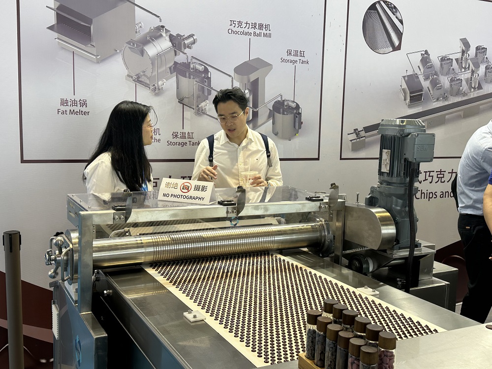 在本次展會中,我們攜帶的“明星產品”巧克力滾筒滴澆機,巧克力涂層機,巧克力精磨機,巧克力球磨機,巧克力調溫機,拋光機(Chocolate Chips Rotary Depositor, Chocolate Enrober, Chocolate Conche, Chocolate Ball Mill, Chocolate Tempering Machine, Chocolate Coating Pan)吸引了各界人士的駐足咨詢,再次感謝大家的支持!