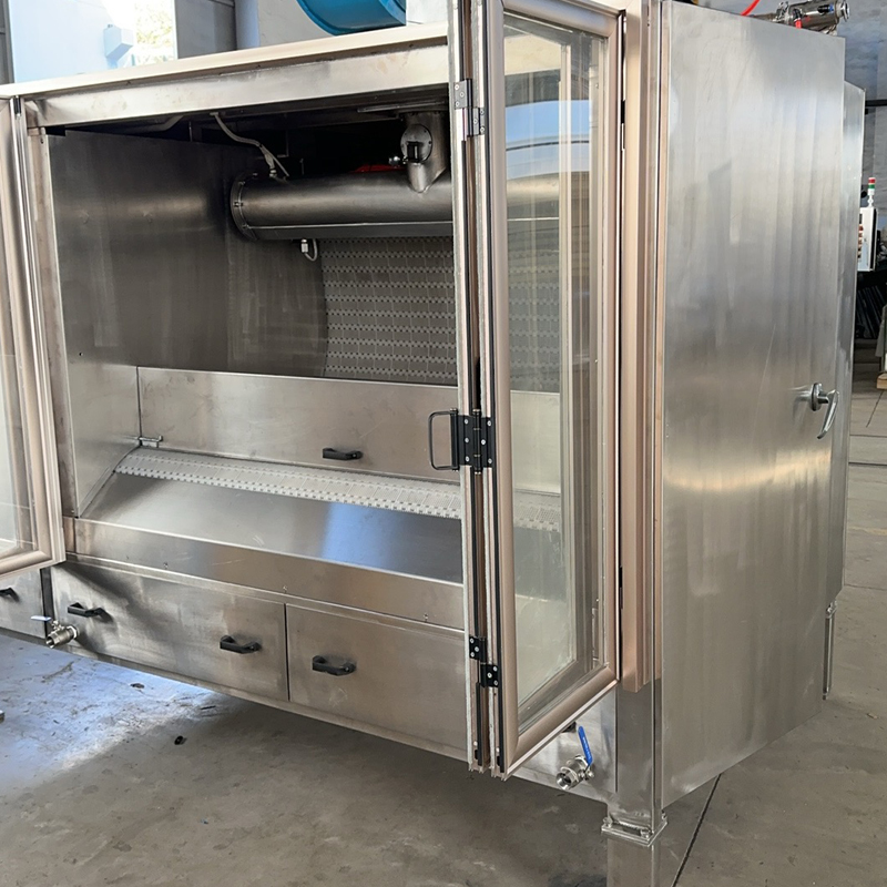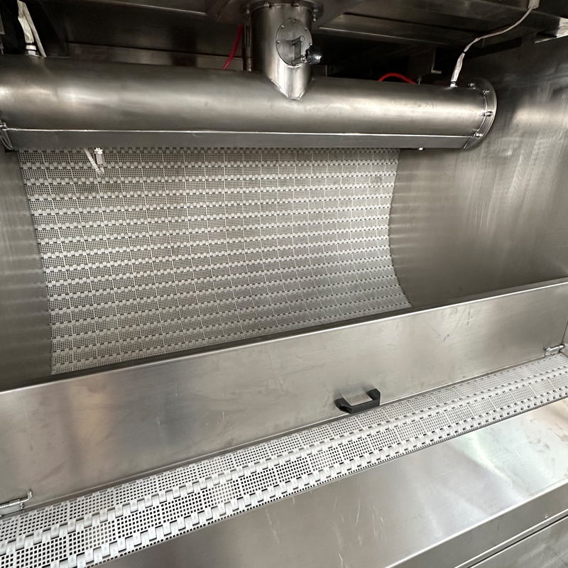 與傳統(tǒng)的涂衣機(jī)不同,新設(shè)計的巧克力涂衣機(jī)配有一個巨大的滾筒輸送帶,可連續(xù)涂覆從頂部氣動巧克力噴嘴噴出的霧化巧克力。它是大規(guī)模工業(yè)化生產(chǎn)麥提莎巧克力球的理想選擇。